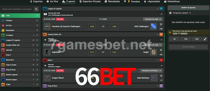 O 66bet oferece uma grande seleção de opções de apostas em e-sports com probabilidades competitivas